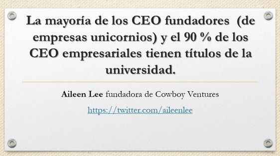 - 21% de los cofundadores unicornios son ex alumnos de Harvard 13% Berkeley